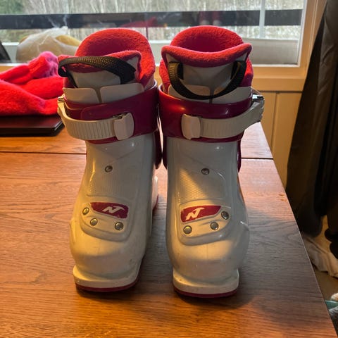Nordica Team J alpinski 120 cm med staver og Rossignol Comp J4 skistøvler barn