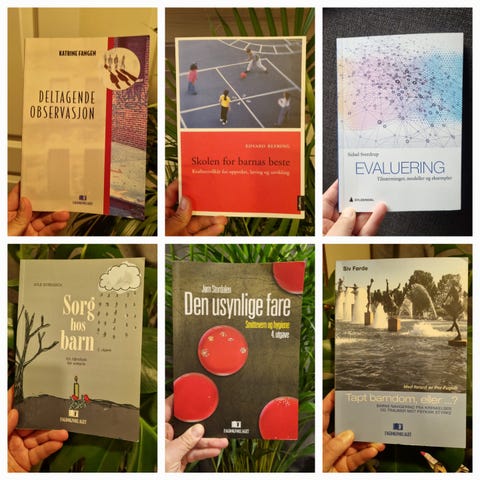 Tre franske lærebøker med tilhørende oppgavehefter: disse er det skrevet noe i.
