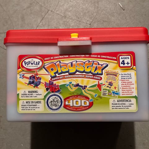 Playstix byggesett selges uten tilhørende oppbevaringseske.