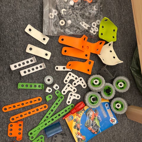 Bruksanvisning/hefte på 54 sider med byggeforslag følger med.