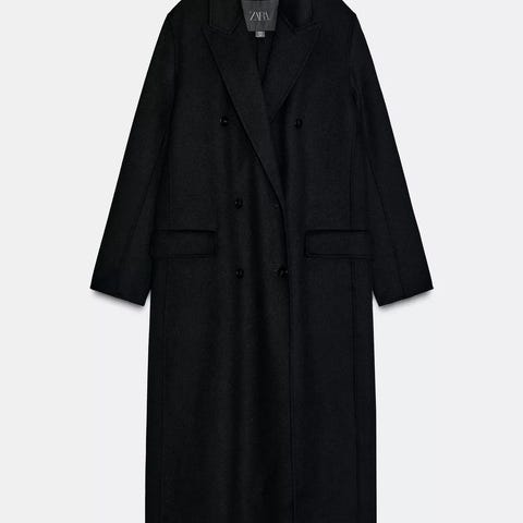 Zara kåpe for dame i størrelse M. Kåpen er blå med rutemønster i kontrastfarger og har hette. Den lukkes med dekorative hemper i front. Yttermaterialet inneholder ull, mens fôret er i syntetiske materialer. Passer som yttertøy i kjøligere vær.