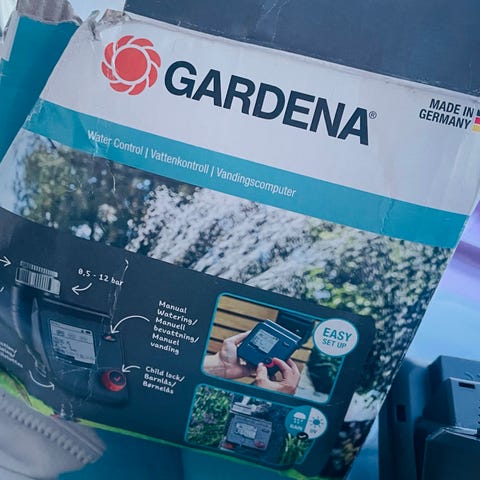 Komplett, programmerbart og velutrustet vanningssystem for hekker, busker, blomsterkasser og potter. Batteridrevet (9V) kontrollenhet som kobles til vannkranen. Forbausende enkelt å "programmere". Masse tilbehør utover "grunnpakke" (dyser, ekstra micro dripslange og ulike dyser). Brukerveiledning/montering og produsentens instruksjonsmanual for styringsenheten medfølger. Systemet er kun brukt en sesong.
