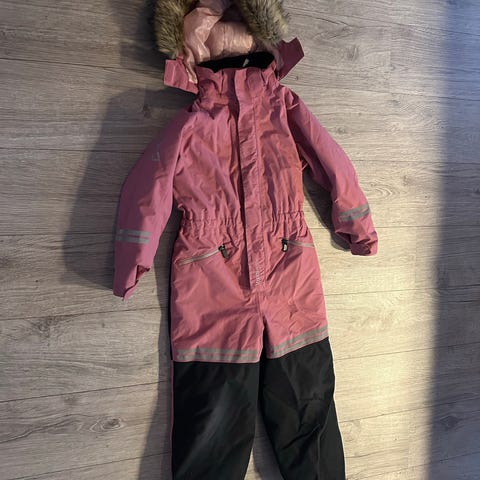 KappAhl Kax Proxtec vinterdress for barn i størrelse 134. Dressen er grønn med mørke kontrastfelt og refleksdetaljer. Ytterstoff i polyamid, med fôr og vattering i polyester. Modellen er unisex og har hette, strikk i midjen og forsterkede partier på knær og bak. Egnet som yttertøy i kaldere vær for barn rundt størrelse 134.