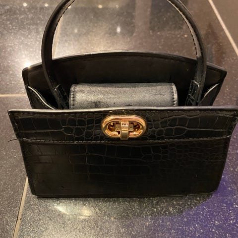 H&M veske for dame i svart kunstlær. Vesken har quiltet mønster og to korte hanker, samt avtagbar og justerbar skulderrem som gjør at den kan bæres både i hånden og over skulderen. Innvendig har den hovedrom med glidelåslomme på siden for mindre eiendeler. Passer til hverdagsbruk eller enklere anledninger der det er behov for en liten til middels stor veske til nødvendigheter som mobil, nøkler og lommebok.