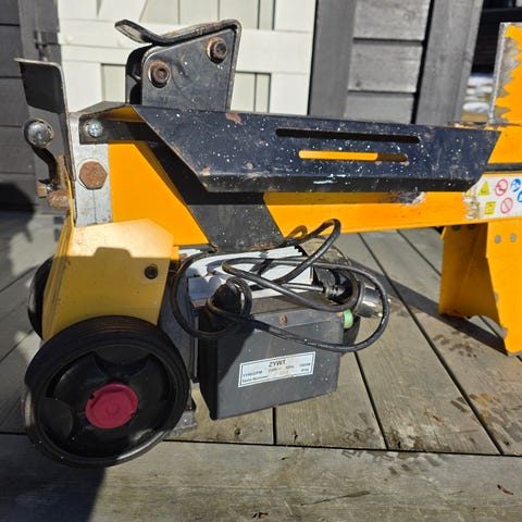 Praktisk elektrisk vedkløyver selges. 230V / 1500W, typisk ca. 4–5 tonn kløyvekraft. Perfekt til ved til peis/ovn hjemme.