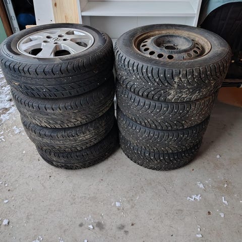 Samboeren selger fire sommerdekk fra Minerva, Radial F209. Montert på Volkswagen 15" alu-felger.