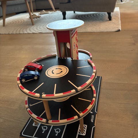 Parkeringshus med heis i tre. Pent og lite brukt.
