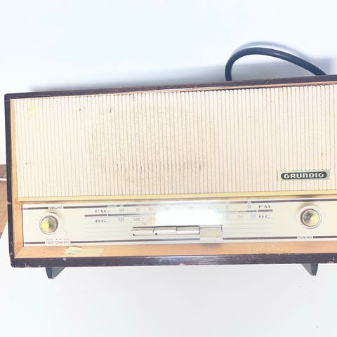 Vintage bordradio i treverk