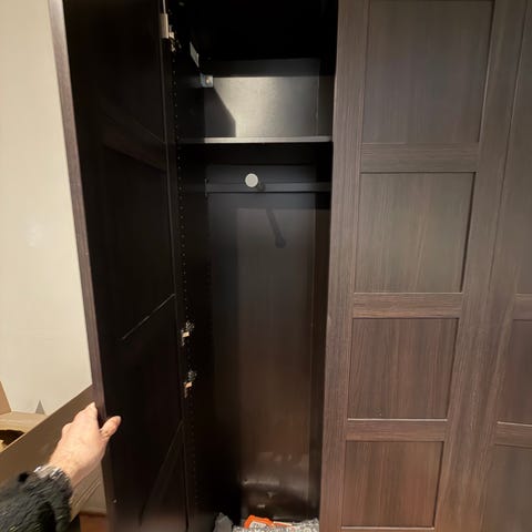 Gir bort et demontert Pax-skap fra IKEA, med noen hyller. Mulig skapet må fikses litt.