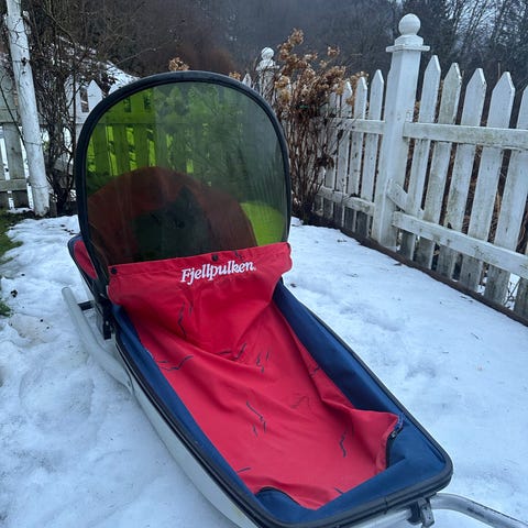 Fjellpulken barnepulk fra 2015/2016 selges. Drag følger med. Pulken er lite brukt og i god stand.