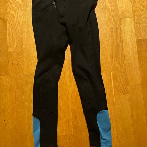 Ridebukse fra merke Easy Rider i str. 46. Buksen er svart med brune forsterkningsfelt. Elastikk nederst ved anklene for bedre passform.