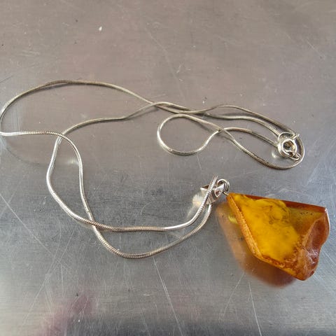 Rav pendant kjøpt i Skottland og aldri brukt. Selger videre.