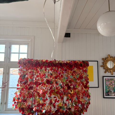 Aluminium stamme med mørk burgunderrød akryl. Høyde 45 cm, diameter 58 cm.