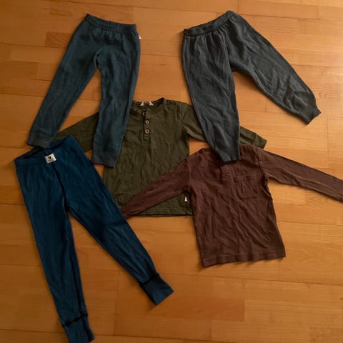 Pent brukt ulltøy med noen få bruksmerker. Skogstad ullfleece sett er str 5 men stor i størrelsen så passer til resten. Vikafjell settet er superundertøy (ikke ull).
