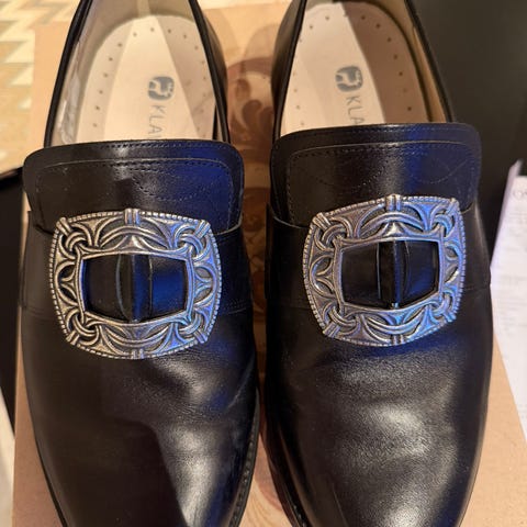 Et par lite brukte Klaveness bunadsko selges.