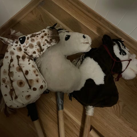 Selger tre kjepphester. Pris pr kjepphest er kr 150.