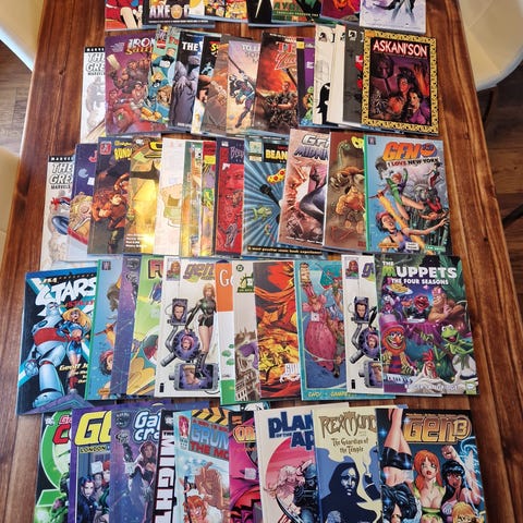 Blandet lot med tegneserier fra DC og Marvel. På bildene vises blant annet hefter med Batman, Spider-Man og andre superhelter. Serienes titler og numre varierer, og heftene ser ut til å være i standard amerikansk tegneserieformat. Egner seg for samlere eller lesere som ønsker ulike superheltserier i én pakke. Se bildene for oversikt over hvilke titler som inngår i loten.