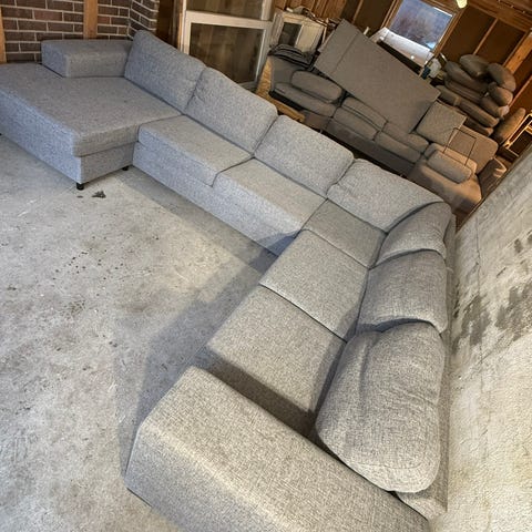 Fint brukt sofa. 3+2 seter. Trekkene kan tas av og vaskes. Vendbare puter. Kan hentes om noen uker etter avtale.