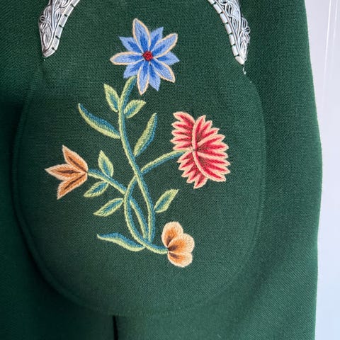 Nordlandsbunad str xs-s i god stand selges. Det følger med to skjorter, liv, stakk, forkle, sjal og veske. Den kan legges ned 4-5 cm. Bunaden er 85 cm fra livet og ned. Fra skulder til liv er den 41 cm. Passer noen på rundt 160-165 cm. Denne bunaden er original og er sydd i tungt tykt ullstoff.