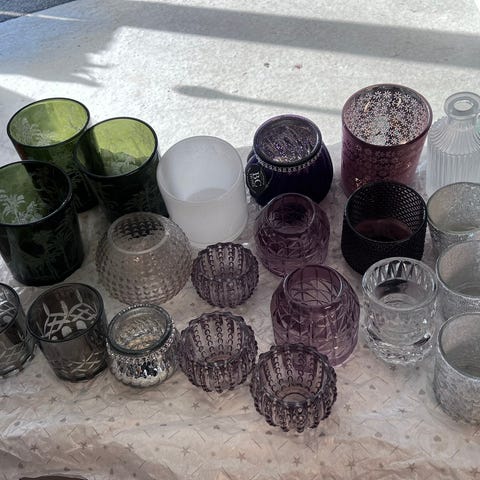 - 15 fargerike telysholdere (noen med litt slitt farge)