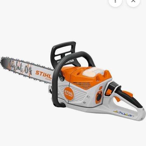 Stihl motorsag for bensindrift i oransje og hvit farge. Sagkroppen har fremre og bakre håndtak med håndbeskyttelse. Sverd og kjede er montert på sagen. Kjedestrammer og kjededeksel er plassert på høyre side av sagen. Startsnor og luftfilterdeksel er på venstre side. Motorsagen er egnet til kapping av ved, kvisting og annet trearbeid der en bensindrevet sag er nødvendig. Nærmere tekniske spesifikasjoner som sylindervolum, effekt og sverdlengde er ikke oppgitt og bør eventuelt avklares med selger.