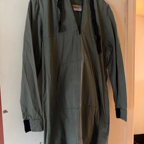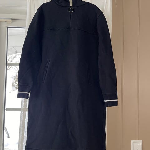 Holzweiler hverdagskjole for dame i størrelse M. Kjolen er svart og laget i bomull. Den har lange ermer, hette og glidelås med ringdetalj i halsen. Mansjettene har kontrastdetaljer og HZW-broderi. Passer som en enkel og behagelig hverdagskjole.