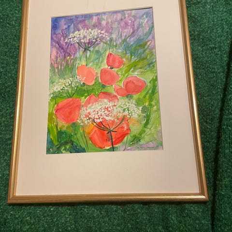 Maleri med tulipaner i ramme 1959