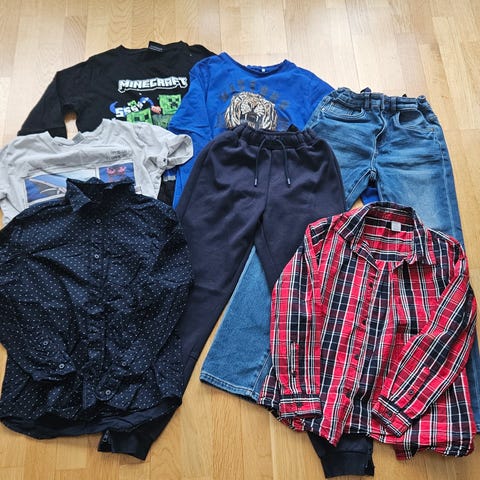 Selger en klespakke i str 140. Klærne er knapt brukt og fremstår som nytt.