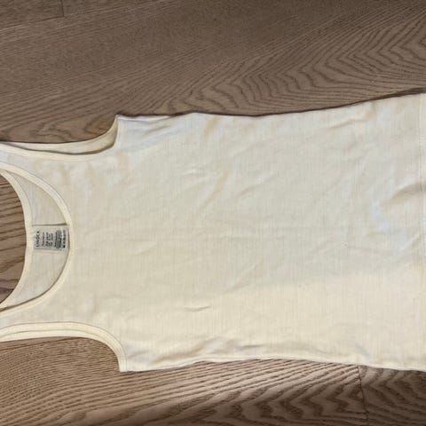 Lindex Pure Merino ullsinglet for barn, unisex, i størrelse 152 som passer barn i 10-12år. Singlet i hvit farge, laget av merinoull. Modellen har rund hals og er ermeløs. Egnet som innerlag til hverdagsbruk eller under uteklær i kjøligere vær.