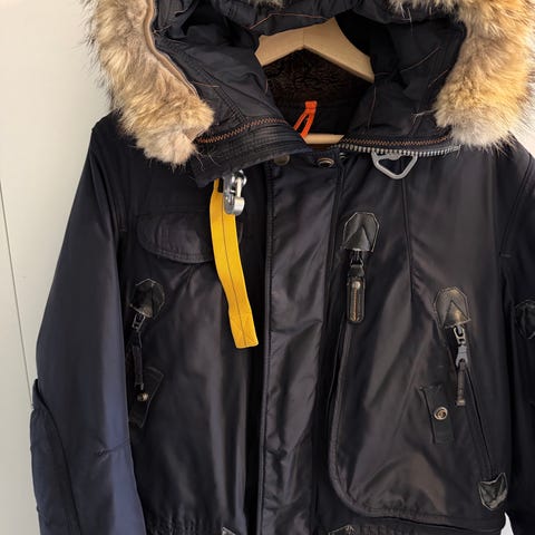 Dette er en solid og varm jakke fra Parajumpers – kraftig ytterstoff, signatur-lukking ved hals, flere funksjonelle lommer og quiltet innerfôr. Jakken har avtakbar hette med pelskant og myk, varmende innside som gjør den godt egnet til norsk vinter.