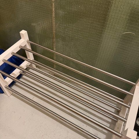 IKEA skohylle i metall i svart farge.