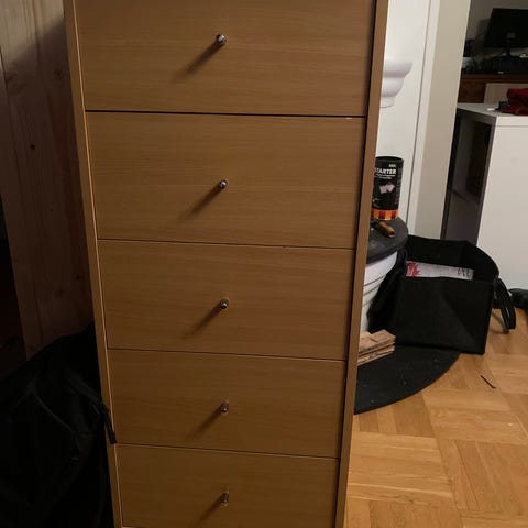 Kommode med speil 500kr og to tilhørende nattbord 250kr.