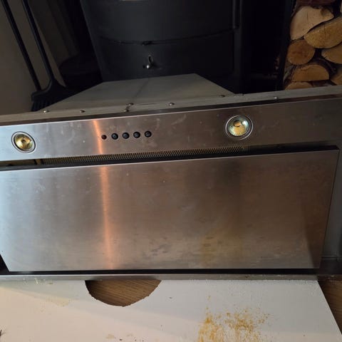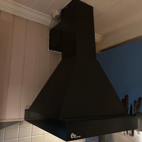 Beha kjøkkenventilator gis bort mot nedmontering. Passer til kjøkken med avtrekk gjennom kanal, som vist på bildet. Funker gull, men er for stor for det nye kjøkkenet :)