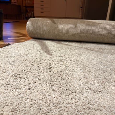 Jysk Madrid teppe i størrelse 80 x 150 cm. Teppe i grå farge, laget av 100 % polypropylen med myk floss. Teppe er maskinvevd og lofritt/antistatisk. Det er lydisolerende og tåler gulvvarme. Egnet til bruk i for eksempel stue, gang eller soverom.
