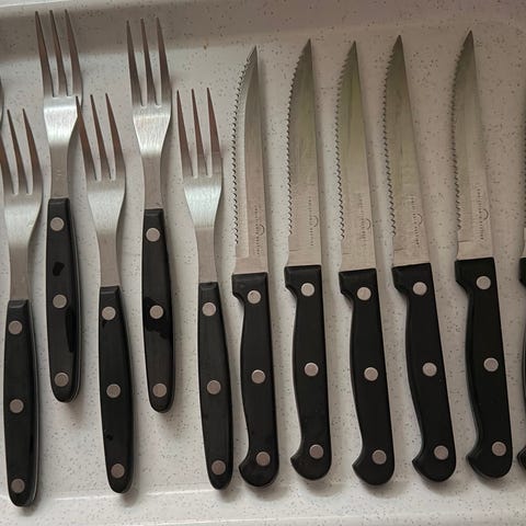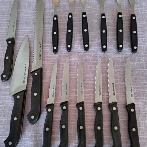 6 biff/grill kniver og 6 gafler. Kr 250 pluss porto