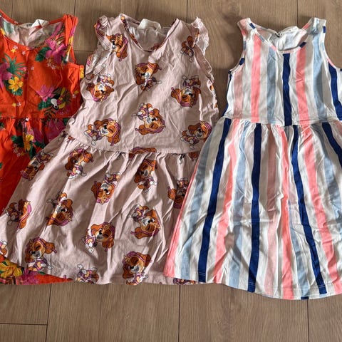 Noen er veldig pent brukt mens andre er godt brukt. Klær fra ulike merker, de fleste fra HM. Størrelse 110/116. Alt er helt og pent, men kan ha noen flekker.
