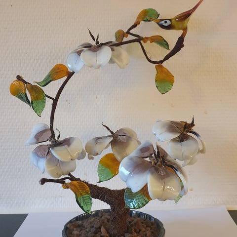 Dekorativ fuglefigur på sokkel i gullfarget. Figuren forestiller en fugl med kam på hodet, plassert på en tynn metallstang festet til en rektangulær metallplate som fungerer som fot. Passer som pyntegjenstand på hylle, bord eller i vinduskarm i stue, gang eller andre oppholdsrom.