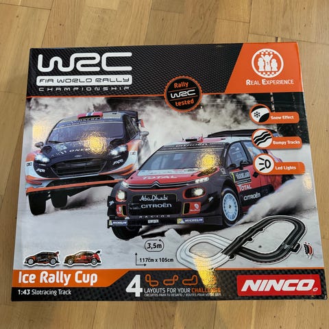 Scalextric Beetle Cup bilbanesett med to racerbiler. Settet inneholder bilbane med rette og kurvede skinner, strømforsyning og to håndkontrollere. Det følger med to Volkswagen Beetle Cup-biler i grønn og gul farge. Banen kan bygges i flere ulike oppsett i henhold til instruksjonsheftet som følger med. Egnet som elektrisk bilbane for innendørs bruk.