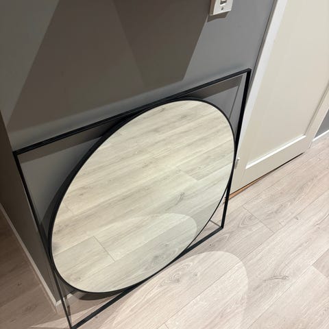 IKEA rundt speil med svart, smal ramme. Speilet har enkel, rund form som passer godt på bad, soverom, gang eller stue. Nøytralt design gjør at det kan kombineres med ulike innredningsstiler. Kan henges på vegg der det er behov for speilflate og lysrefleksjon.