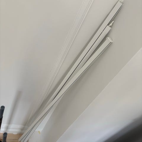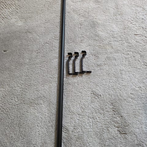 IKEA gardinstang i svart metall. Består av to stenger med justerbar lengde og endeknotter. Egnet for oppheng av gardiner i stue, soverom eller andre rom der det er behov for gardinoppheng. Passer til vanlige gardinringer eller gardiner med løpegang eller rynkebånd, avhengig av tilbehør som brukes.