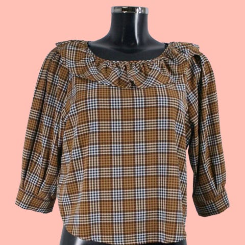 Hést bluse brun rutete bomull dame str M