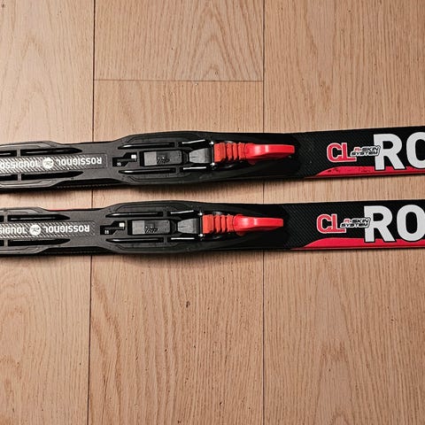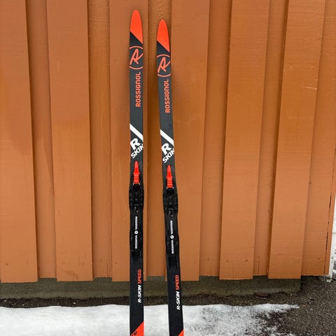 Rossignol R-Skin langrennski med integrerte feller. Skiene har fell under festesonen for godt feste og enkel bruk uten smøring.