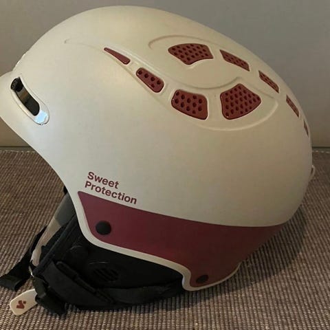 Sweet Protection skihjelm i svart med røde detaljer. Hjelmen har ventilasjonsåpninger på toppen og fronten, samt justerbar hakestropp. Ørepartiene er polstrede og har netting for ventilasjon. Str M/L (56-58)