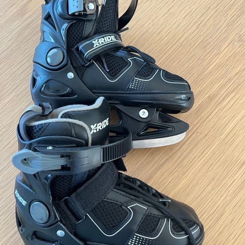 X-Ride PW-2238NTE skøyter for barn i størrelse 29-32. Modellen har justerbar hardplast-støvel med spenner og lisser for stabilitet rundt fot og ankel. Egnet til bruk på isbaner og skøytebaner for barn med skostørrelse rundt 30.