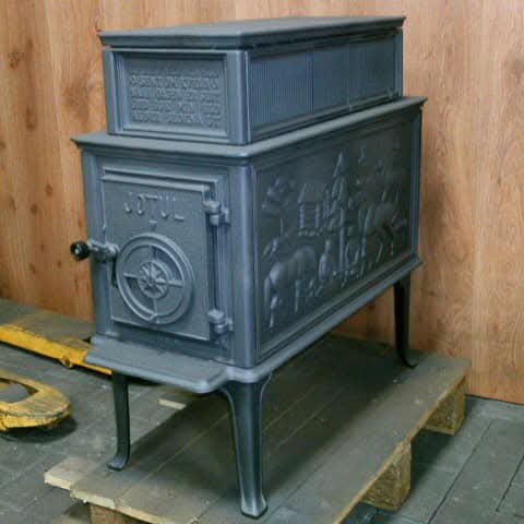 Jøtul vedovn i støpejern. Svært god og funksjonell . Ovnen har frontdør og gitter kan brukes om man ønsker åpen peis. Egnet som varmekilde i stue, hytte eller andre oppholdsrom der det er tilrettelagt for vedfyring og godkjent pipe-/røropplegg.