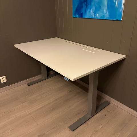 Fint og praktisk hev-senk skrivebord fra Kinnarps i god stand med mulighet for svært stor høydeforskjell. Perfekt for hjemmekontor!