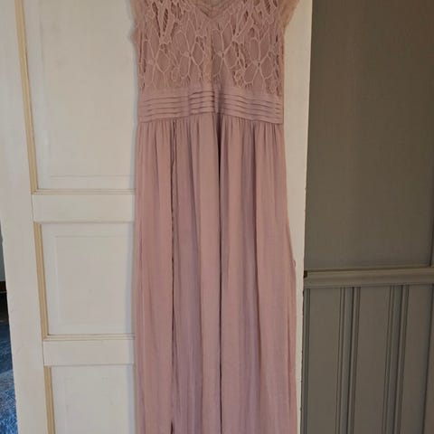 Selger en pent brukt selskapskjole fra Vila. Brukt 2 ganger. Det er med underkjole. Og en ikke synlig splitt for bedre passform og med glidelås i siden.