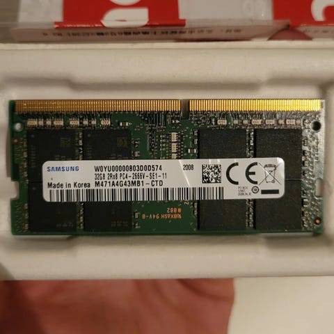Samsung RAM-modul 4GB for datamaskin. Modul i SO-DIMM-format, egnet for bruk i kompatible bærbare PC-er eller andre enheter som støtter denne typen minne. Passer som oppgradering eller erstatning der tilsvarende Samsung-minne brukes.