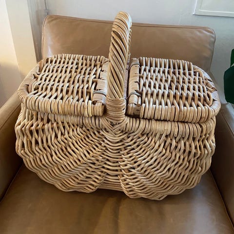 Bolia oppbevaringskurv i grå filt med flettet struktur. Kurven har to mørke håndtak på sidene.