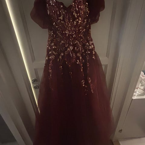 Nydelig ballkjole i blå/lilla farge med paljetter.